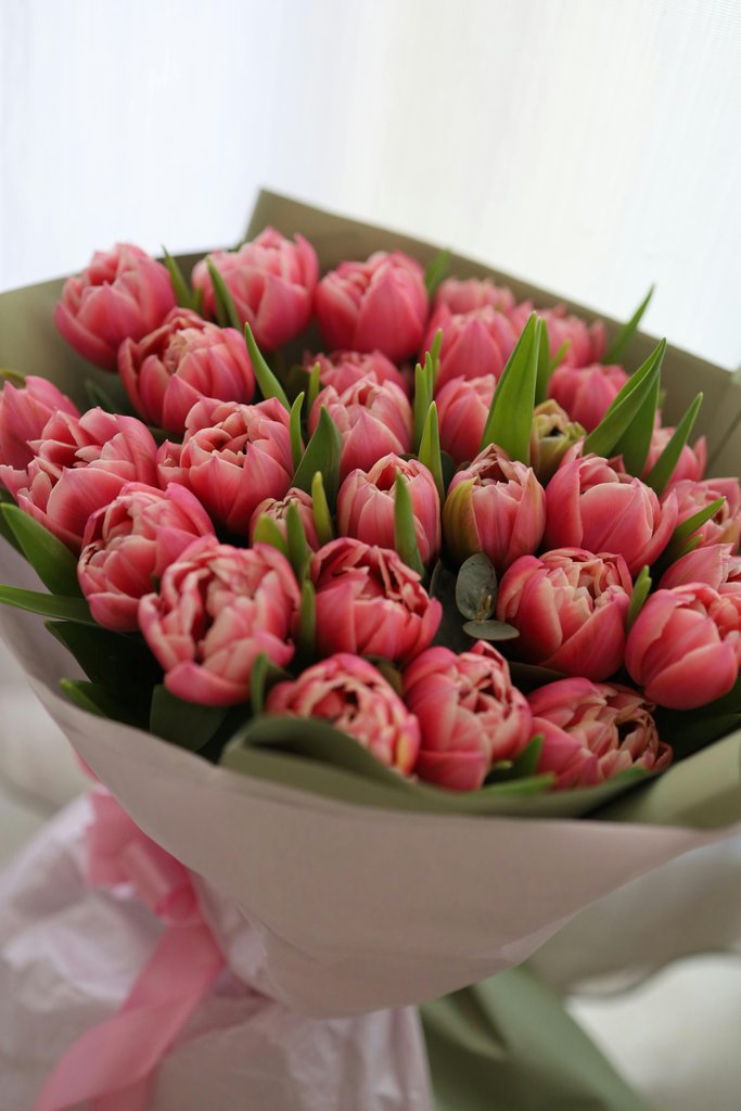 Eine saubere Vase hilft den Tulpen beim Durchhalten – heißes Wasser und etwas Spülmittel reichen schon. Vor dem Arrangieren lohnt es sich, die Stiele 1–2 cm frisch anzuschneiden, denn so bleibt die Wasserversorgung gut. Überflüssige Blätter lassen sich entfernen, ein oder zwei Blätter am Stiel wirken dekorativ.