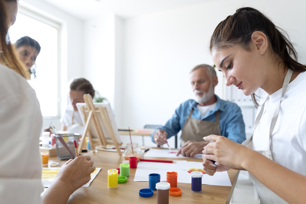 Im Unterschied zur Musiktherapie, die in erster Linie auf den Rhythmus baut, ist es bei der Maltherapie eher etwas Manuelles. Man arbeitet mit Pinseln und Farben, bringt etwas zu Papier, man drückt etwas aus, lässt auf diesem Weg auch etwas los und räumt damit auch irgendwie auf und das alles hilft bei den unterschiedlichsten Krankheitsbildern.