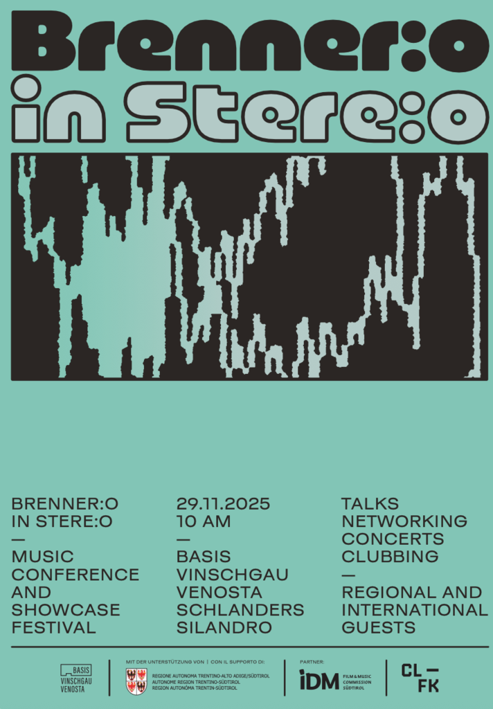 Am Sa, 29. November, gibt's ab 10 Uhr spannende Vorträge, Diskussionen, Networking-Momente und Live-Musik im KASINO BASIS in Schlanders, das sich für einen Tag in den Hotspot der regionalen und internationalen Musikszene verwandelt.