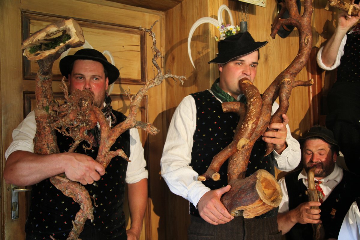 Die Instrumente kommen mitten aus dem Wald. Die Musikkapelle Wahlen sammelt Wurzeln, große, kleine, je krummer desto besser und verwendet sie als Blasinstrumente. Ein Riesenhit bei jedem Auftritt.