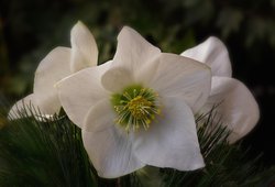 - Christrose (Helleborus niger) Weiße Blüten, Blütezeit ab Dezember. Ideal für halbschattige Bereiche im Garten.
